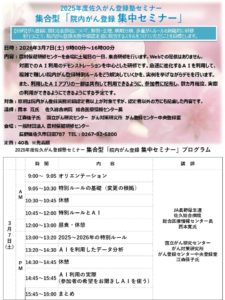 - 2025年度佐久がん登録塾 集合型「院内がん登録 集中セミナー」